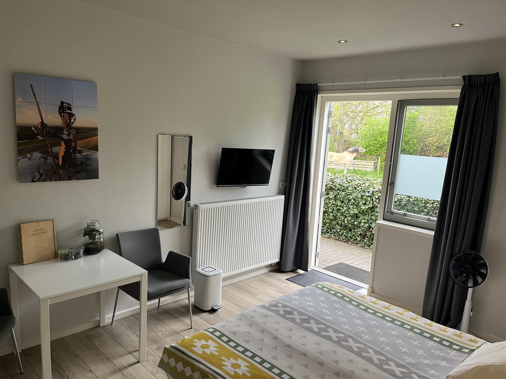 B&B Borkum heeft 1 tweepersoons boxspring bed met anti-allergeen dekbedden en een garderobekast. Verder is er een koelkast en een zitje met tv en een waterkoker en Nespresso apparaat waar je een lekker kopje thee of koffie kunt zetten. De kamer heeft een eigen ruime badkamer, met douche, wastafel en toilet. Er staat serviesgoed, bestek, glazen en een koelkastje in de kamer, dus je kunt ook zelf iets meenemen voor het ontbijt of lunch. En hoe lief ze soms ook zijn, huisdieren zijn helaas niet toegestaan.