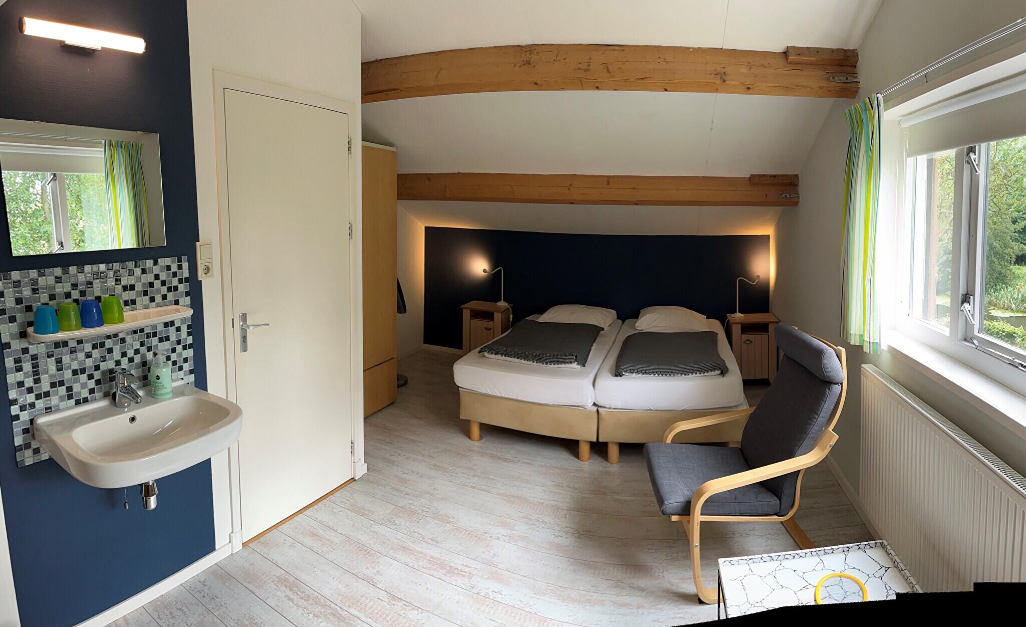 Vakantiehuis Zoutkamp is een groot en gezellig vakantieverblijf waar het heerlijk toeven is met een groep familie of vrienden. De ruime lichte woonkamer op het zuiden heeft een open Siematic keuken met keramische kookplaat, magnetronoven, afwasmachine en koel/diepvriescombinatie en is volledig ingericht voor het koken voor groepen. Er is een ruime eethoek waar je met z’n allen aan de lange tafel kunt ontbijten, dineren of gezellig een spelletje kunt doen. In de zithoek vind je de flatscreen tv. Vanuit de woonkamer stap je het terras op. Het terras ligt op het zuidoosten en ook hier vind je voldoende meubilair om lekker met z’n allen buiten te kunnen zitten of eten. Beneden is er een badkamer met douche, toilet en wastafel en apart nog een tweede douche en een tweede toilet. Op alle slaapkamers is een wastafel met warm en koud water.
